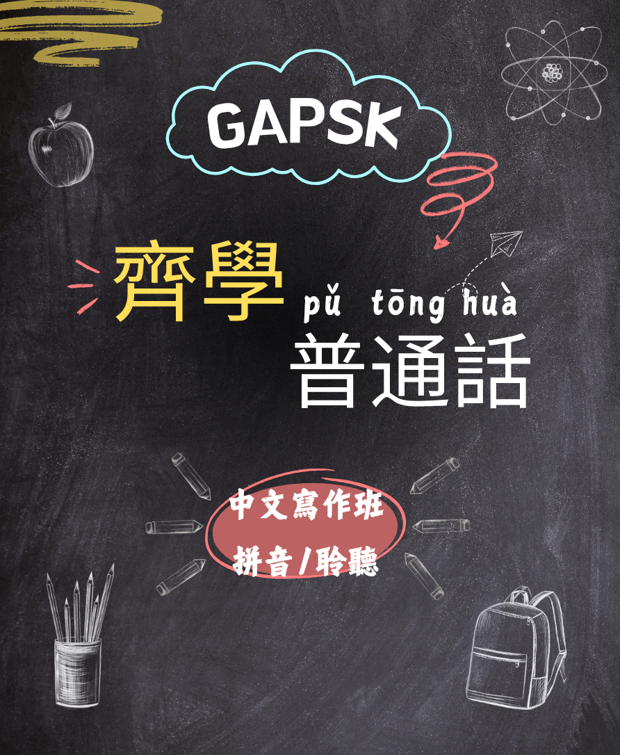 普通話除了可以運用在唱歌當中,也是現今生活必不可少學習的其中一種語言。學好普通 話不僅能令小朋友在咬字、發音等方面做得更好,亦可以培養及提升孩子朗誦能力。 GAPSK 普通話水平考試是對普通話能力的綜合考試,包括聽、說、讀等各種能力。這一原則與 香港考試局的「普通話水平測試」、教育統籌局的「中學普通話科會考」相一致。 考試以活動遊戲的方式進行,令學生與考官在輕鬆愉快的對話和遊戲中完成普通話測試,不但 大大減低考試的壓力,其內容適用於升小一的面試對答,大大提升孩子口語能力及自信心。